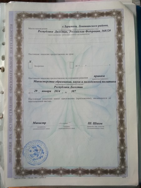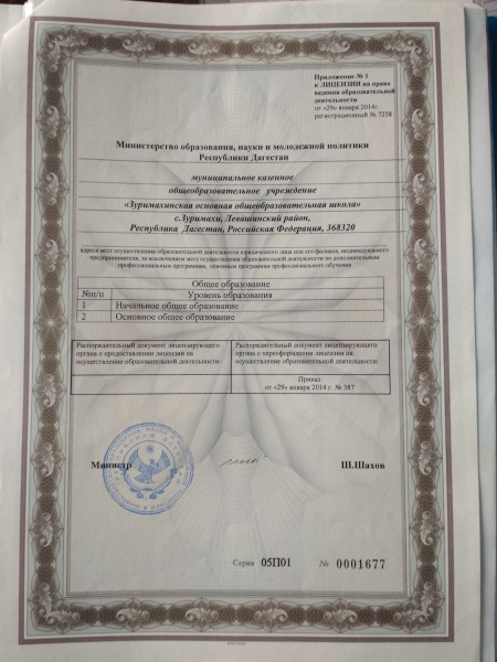 Адрес местонахождения образовательной организации* 368313, Республика Дагестан, Левашинский район, с. Зуримахи, ул. И.В.Сталина 19